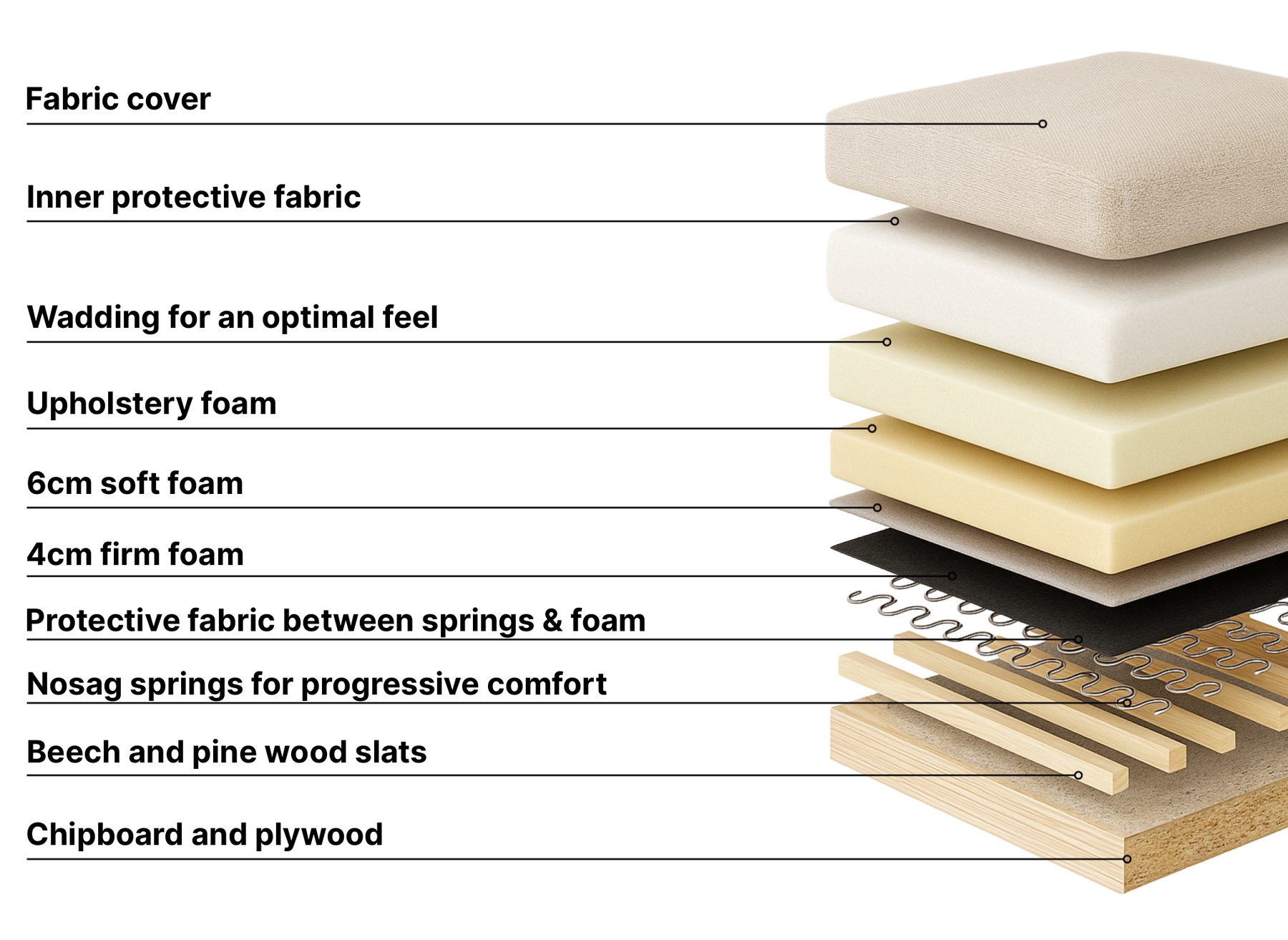 - Protective fabric between suspension and foam